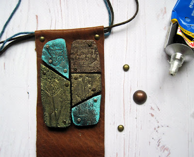Приклеиваем детали к основе-я взяла лоскут кожи и сделала сверху загиб для того, чтобы продеть шнуры. И несколько акцентов завершат образ